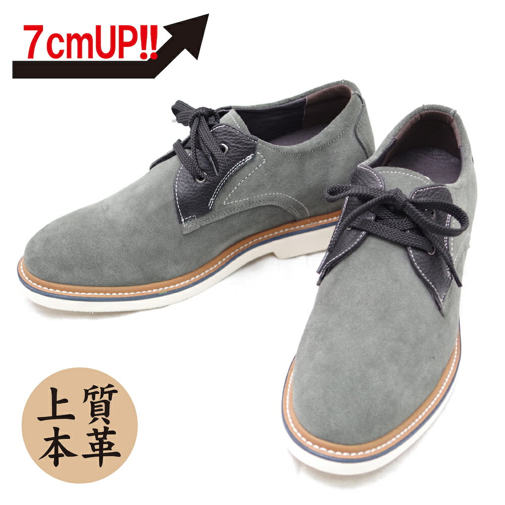 【7cmUP】 +7cmUP シークレットシューズ 7_casual_010 カジュアルタイプ おしゃれシューズ スエード 靴 7cm背が高くなるシークレットブーツ シークレット メンズ グレー 紐履タイプ