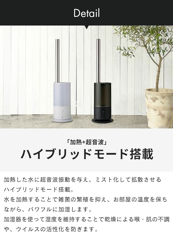 商品情報「加熱+超音波」2つの特徴を持ったハイブリッド加湿器。